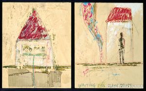 Laurogeiko hamarkadan batez ere, Japoniako unibertsitatean zegoela, mendian bakarti altxatzen den teilatu triangeluarreko etxea agertzen da Nararen margolanetan eta eskulturetan, bere haurtzaroko solairu bateko etxea gogoraraziz. Sinbolo hori aldatuz joan da denboran zehar. Hasieran, etxea zen motibo nagusia, hala nola Futaba etxea, euri-tanten zain (Futaba House, Waiting for Rain Drops, 1984) koadroan; baina presentzia galduz joan zen, eta Alemaniara joan aurreko obretan gero eta txikiagoa bihurtu zen, miniatura baten parekoa, irudikatutako figurekin bat eginez ia, edo barku baten itxura hartu zuen. Eraikina, beraz, mugikorra bihurtu zen. Alemaniara ikastera joateko zorian margotu zuen Ametsen ordua (Dream Time, 1988). Margolan horretan mutiko bat agertzen da argi-uztai baten erdian dagoen etxe formako kaxa baten barruan; atzean, horizonte kurbatu bat eta teilatu triangeluar gorriko eraikin bat. Uztaiaren barruan “such a long way from home” jartzen du ingelesez, “etxetik hain urrun”. Eskuan, mutikoak objektu luze bat dauka, zuzi antzeko bat. Sutan dagoela ematen duen etxe urruneko garra du zuzian? Agian, mutikoa etxe formako itsasontzi batera igo da, eskuan “etxeko” garra duela —bere jaioterriko argia, alegia—, eta itsasora doa, lurralde berri baten bila.